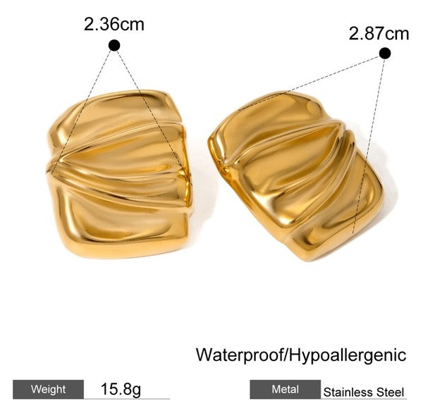 The BRAI Stud Earrings redefine everyday luxury with their distinctive textured surface and radiant 8K PVD gold finish. Crafted through advanced Physical Vapor Deposition technology, these earrings offer exceptional durability, color retention, and resistance to tarnish or discoloration — maintaining their golden glow wear after wear.