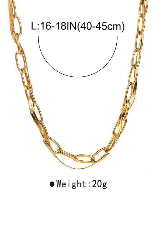 The GEMA Necklace adds instant polish to any look with its modern multi-layer chain and subtle pendant details. Crafted from 18K gold-plated stainless steel, this versatile piece brings depth, shine, and sophistication—perfect for stacking or standing out on its own.