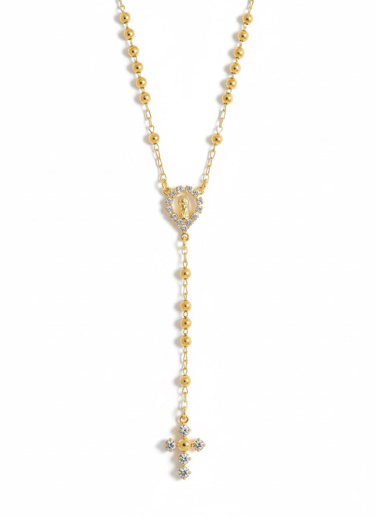 18K Gold-Filled Virgin Mary Rosary Bead Necklace