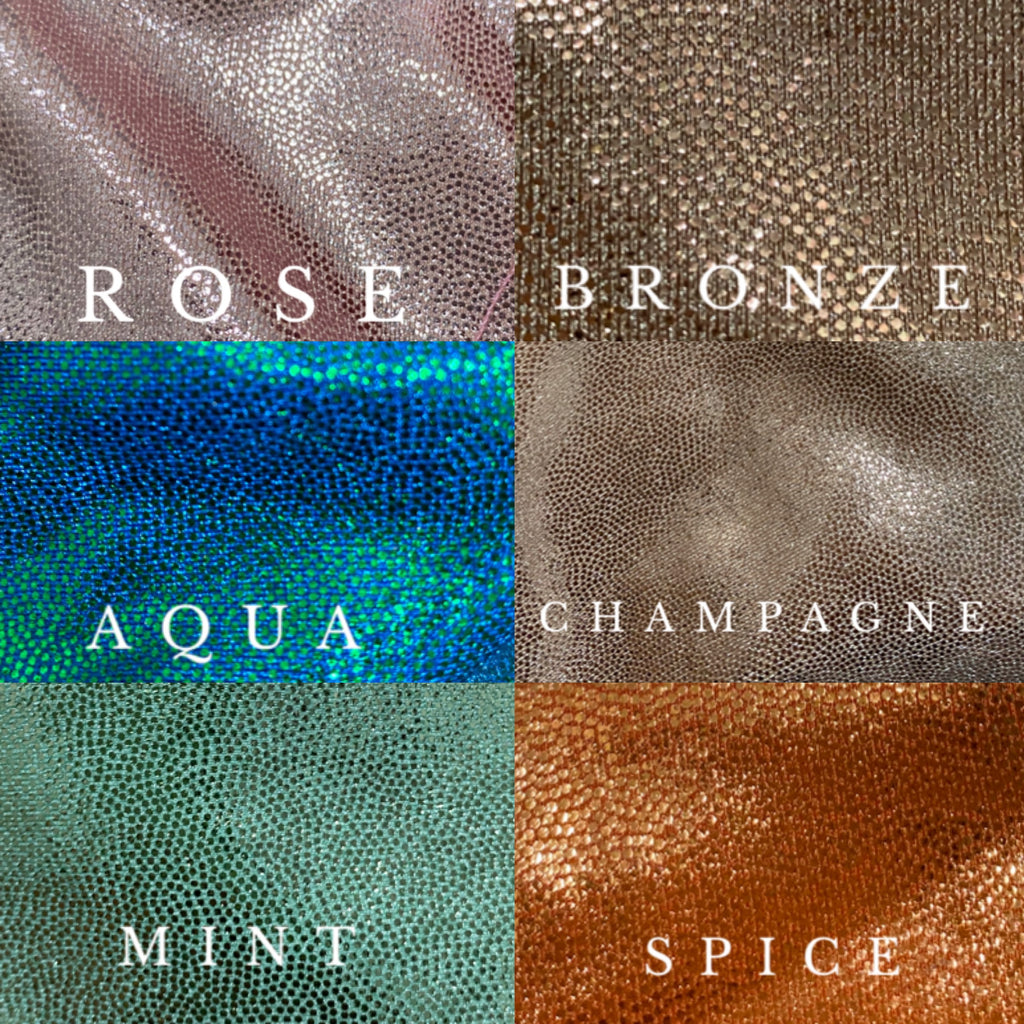 - Swim fabric: 86% nylon, 14% spandex